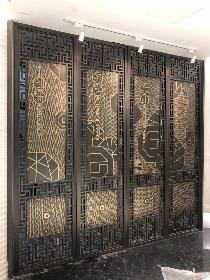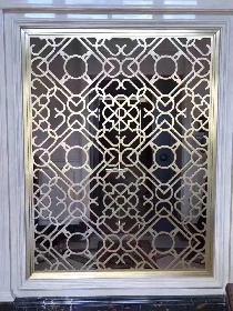 材質(zhì):H62銅,厚度10—15mm尺寸:客戶實際尺寸定制制作工藝:整板雕刻;銅花配件:銅花開模鑄壓成 ..
